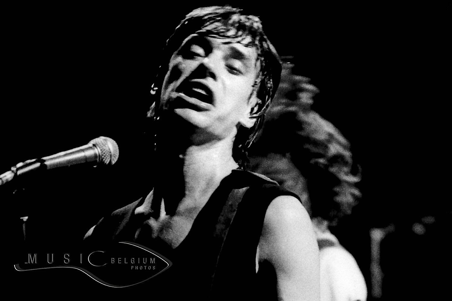 Photo : Jean-Louis Aubert avec Téléphone sur la scène du Rainbow de Londres (Grande-Bretagne) en première partie d’Iggy Pop en juillet 1981