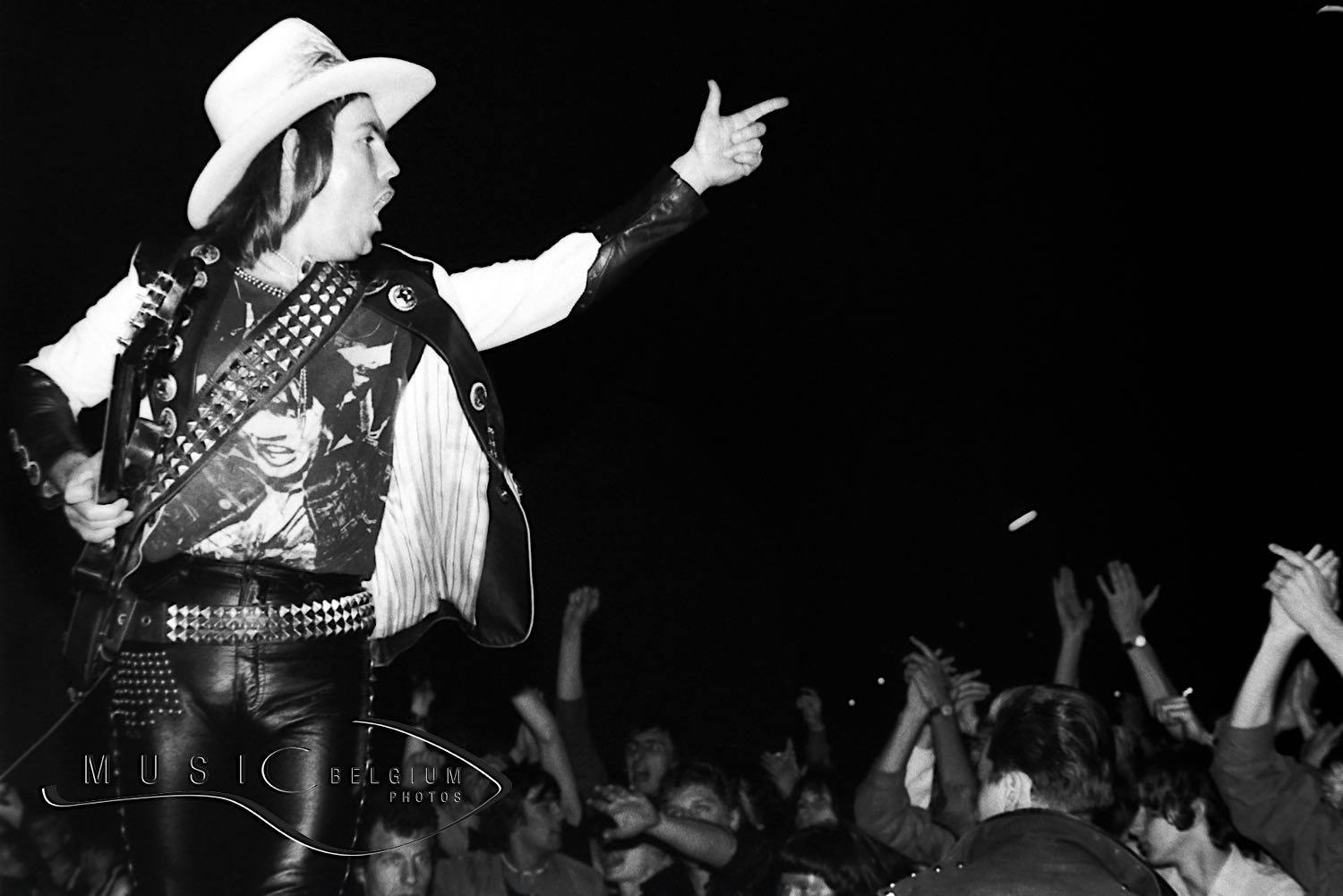 Photo : Dave Hill avec Slade au Feniks Festival de Roosdaal (Belgique) le 16 août 1981